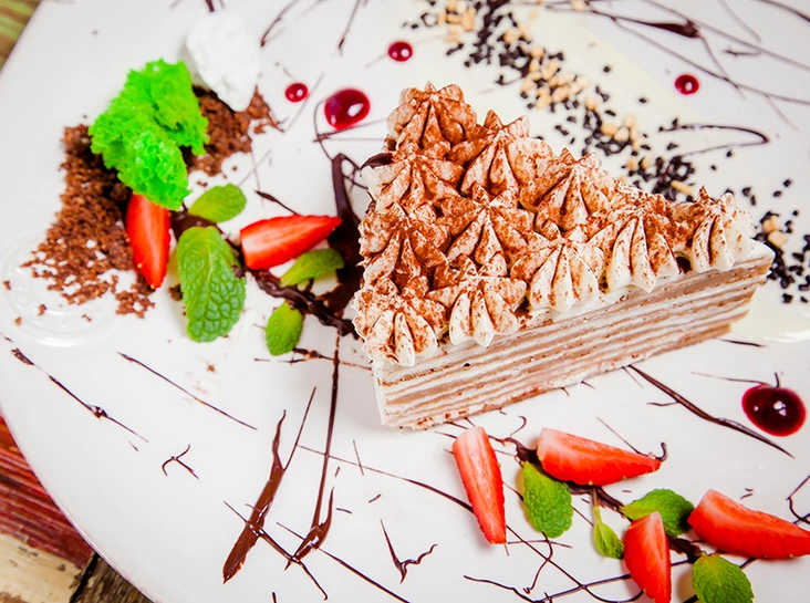 Блинов много не бывает, и в ресторане украинской кухни вы определенно найдете богатый их выбор. В специальном меню найдутся печеные блины с судаком и с курицей, тонкие блинчики с мясом, фаршированные разнообразными начинками, сладкие блины с шоколадно-ореховой пастой из лесных орехов и этажерка из блинов на гречневой муке с печеночными оладьями. Если выбрать что-то одно сложно, стоит заказать ассорти из гречаных, манных, сметанных и кукурузных блинов. Справиться с этим великолепием в сопровождении семги, красной икры, печеночного крема, яиц, свекольной икры, слабосоленой сельди, сметаны и лука в одиночку невозможно, поэтому рассчитано это суперпредложение на двоих или четверых едоков.