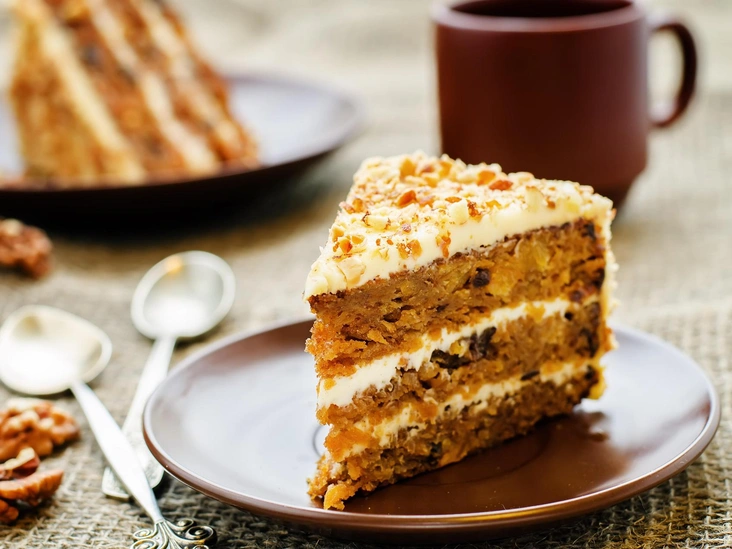 По желанию сделайте глазурь из сливочного сыра. Смешайте сыр, размягченное масло, лимонный сок и сахарную пудру в блендере. Намажьте глазурь на готовый пирог.