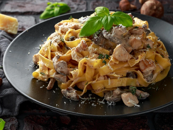6. Нарежьте остывшую курицу тонкими ломтиками, тщательно смешайте ее с макаронами и получившимся сливочным соусом. Паста готова (читайте также: Как превратить макароны в ресторанное блюдо: 6 простых лайфхаков для идеальной пасты).