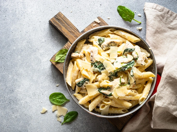 Паста — прекрасный вариант сытного и вкусного ужина для всей семьи. Рассказываем, как приготовить нежнейшие макароны с курицей и шпинатом, приправленные сливочно-чесночным соусом. Весь процесс займет у вас не более получаса (читайте также: Почему итальянки такие стройные: 4 вкуснейшие пасты, которые помогут вам похудеть).