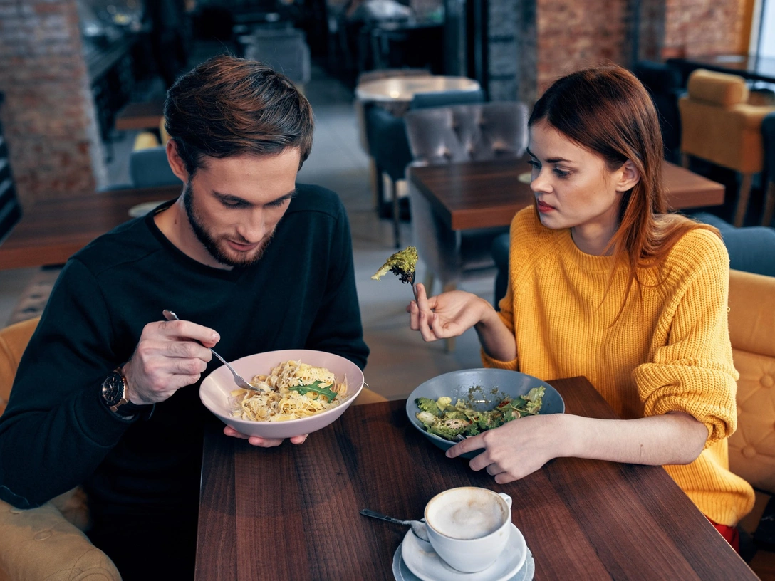 Спагетти и паста — неплохой выбор для первого свидания. Только не с красным соусом! Не все умеют виртуозно орудовать вилкой и не оставлять ярких пятен на скатерти и одежде. Приберегите эти блюда для домашних вечеров, когда капельки томатов на белой футболке не вызовут раздражения. К этой же категории можно отнести и те блюда, которые легко оставляют свои жирные следы — бургеры с капающим соусом, крылышки и ребрышки, пончики.