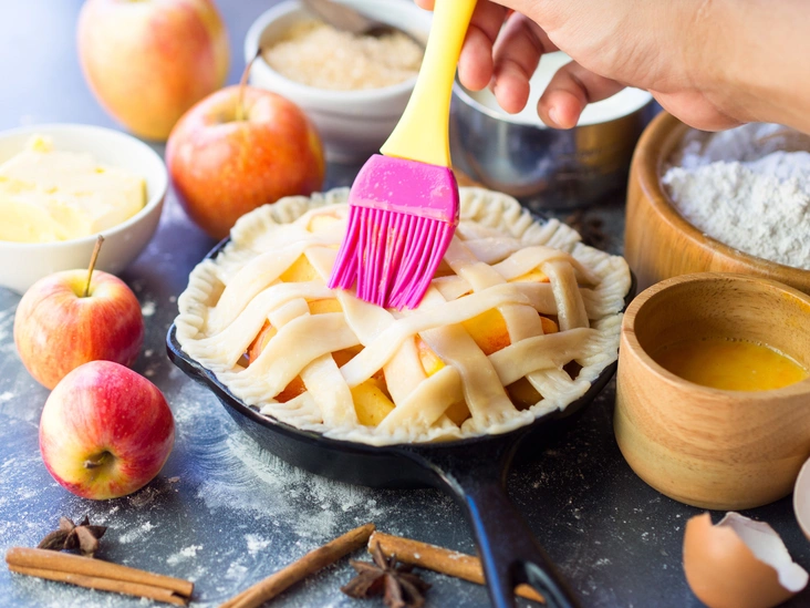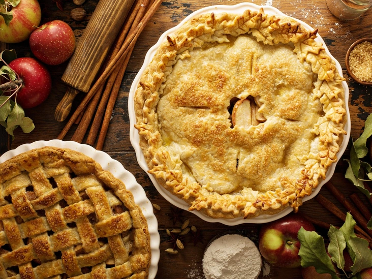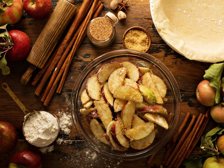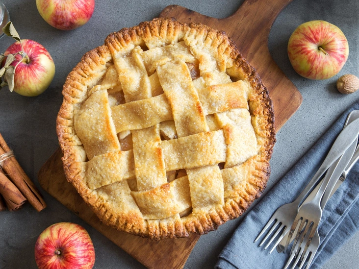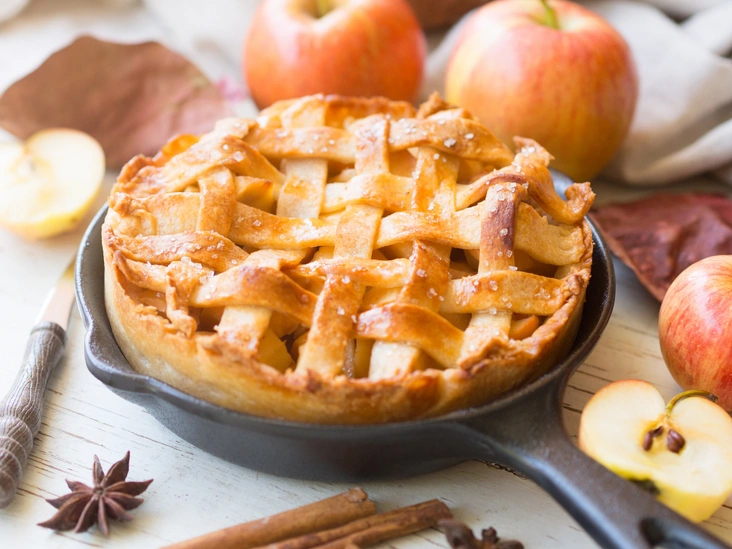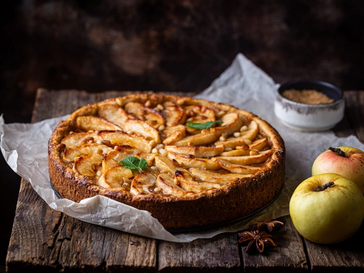 Этот рецепт раскроет яблочный вкус благодаря многообразию оттенков специй, используемых в чае-латте. Он потребует много времени на охлаждение (закладывайте 2 часа на охлаждение теста и еще 3 на «отдых» уже готового пирога), но сам процесс готовки довольно прост.