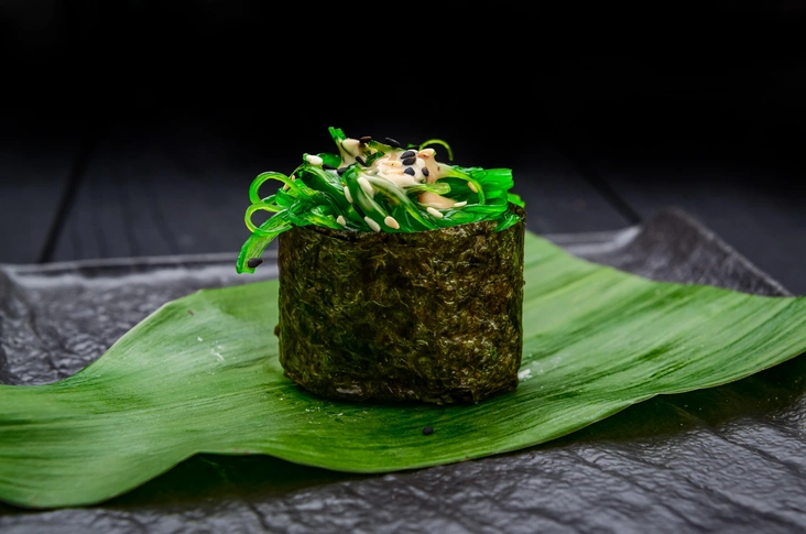 Сформируйте основу из риса, оберните ее листком нори так, чтобы сверху оставалось свободное пространство. В этот самый кармашек положите чуку так, чтобы половина начинки выступала выше нори. Полейте ореховым соусом и подавайте к столу (читайте также: Вредные продукты, которые на самом деле полезны (вы удивитесь).