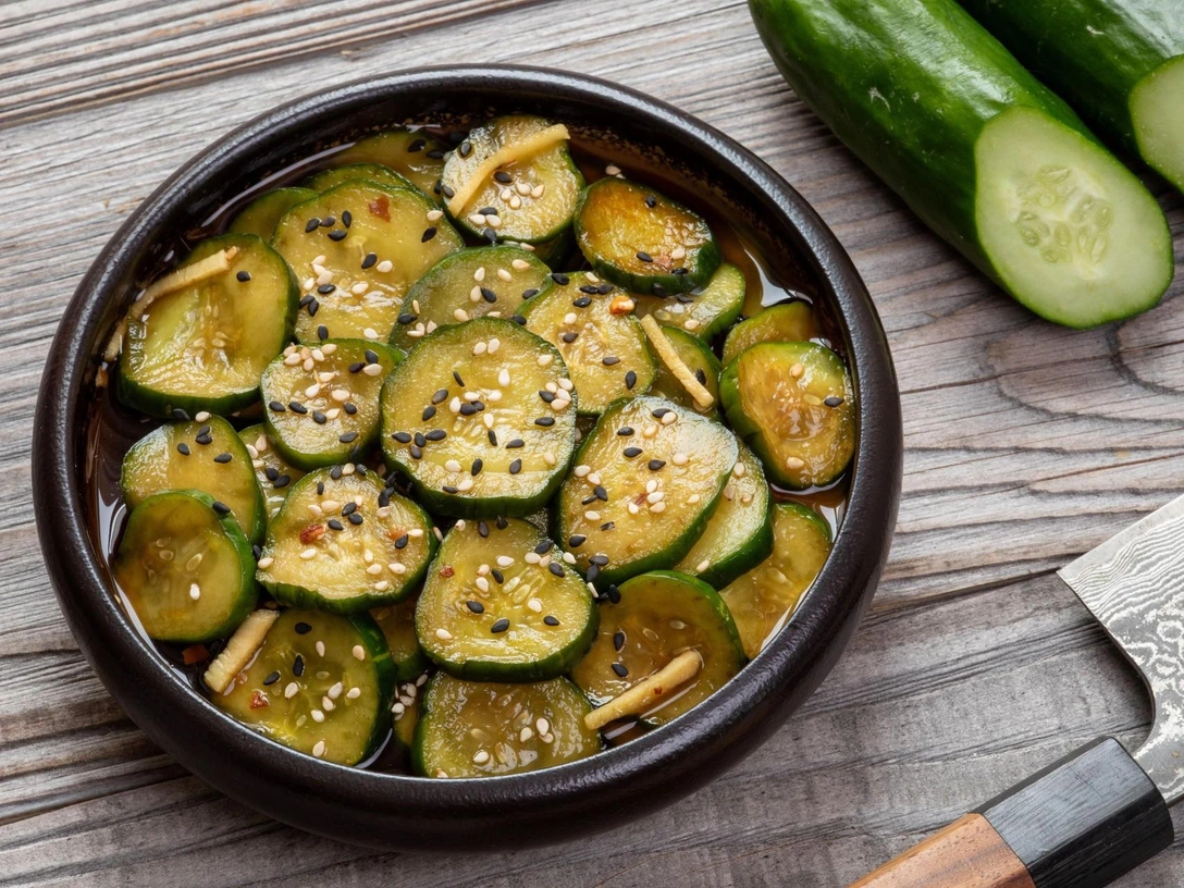 Огуречный салат с добавлением рыбного и соевого соусов под кунжутным маслом — звучит интригующе, не так ли? Такое блюдо можно спокойно приготовить на диете, не боясь высокой калорийности или возможного отекания (читайте также: «Салаты для похудения: 6 идеальных летних рецептов»). Наоборот, каждый ингредиент в этом салате — буквально палочка-выручалочка для худеющих (читайте также: «Ешь больше — худей быстрее: как отказ от ограничений в еде поможет вам сбросить вес»).