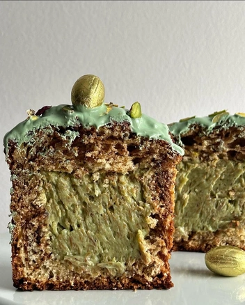 Для этого некоторые пекут сладость из теста с какао-порошком, покрывают ее глазурью из фисташковой пасты, а затем посыпают крошкой из орехов или катаифи. Другие же стараются повторить стандартную «дубайскую» начинку и помещают ее в центр кулича.
