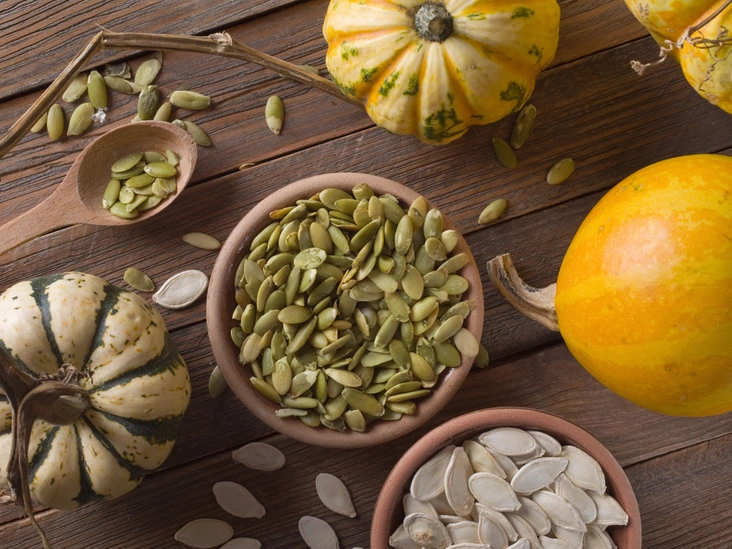 Семена тыквы содержат мощные антиоксиданты, которые защищают тело и мозг от повреждения свободными радикалами. Они также являются отличным источником магния, железа, цинка и меди — все они важны для здоровья мозга. Дефицит цинка связывают со многими неврологическими состояниями, включая болезнь Альцгеймера, депрессию и болезнь Паркинсона. Дефицит железа также часто характеризуется туманом в голове и нарушением функции мозга. Низкий уровень магния связан со многими неврологическими заболеваниями, включая мигрень, депрессию и эпилепсию, его нехватка также может повлиять на обучаемость. Мозг использует медь, чтобы контролировать нервные сигналы, а когда ее уровень не соответствует норме, повышается риск нейродегенеративных заболеваний, таких как болезнь Альцгеймера.