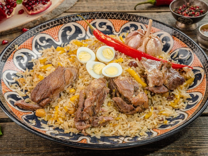 Готовый плов разложить по тарелкам, добавив обжаренный чеснок, украсить перепелиными яйцами (читайте также: Плов: история блюда и классический рецепт).
