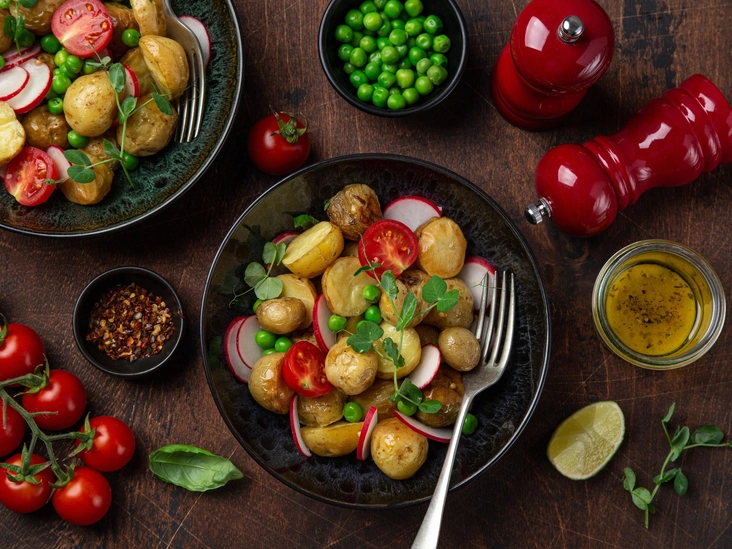 Теплый салат из молодого картофеля с редисом