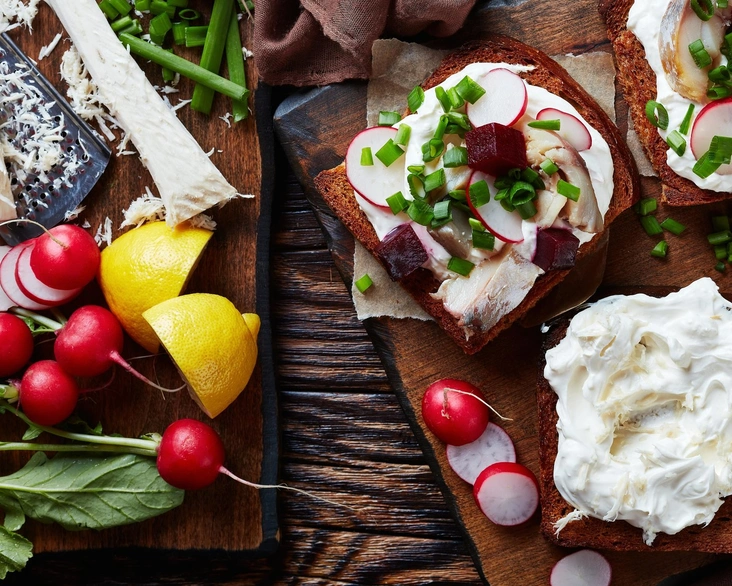 Бутерброд с редисом и грюйером на поджаренном ржаном хлебе — отличный завтрак или ланч в скандинавском стиле на 410 калорий. И даже в городе это угощение будет напоминать о дачной идиллии.