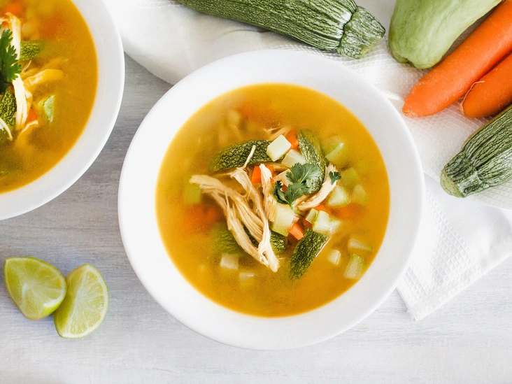 Его часто называют лекарством от гриппа или любимым детским супом, и найти его можно практически в любом меню. Одно исследование показало, что куриный суп действительно может помочь облегчить заложенность носа. Тем не менее, консервированные версии, как правило, содержат очень много натрия, который входит в список нежелательных ингредиентов (например, примерно 106 граммов консервированного куриного супа с лапшой может обеспечить до 80% рекомендуемой суточной нормы натрия).