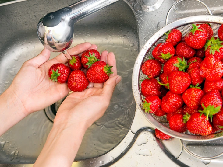 Клубника не начинает вырабатывать этилен, пока не достигнет пика зрелости. Так что слегка неспелую клубнику можно спокойно хранить рядом с другими продуктами, а вот полностью созревшую — лучше держать отдельно.