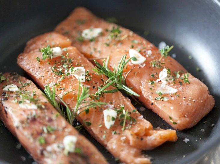 Здесь помогут продукты с высоким содержанием Омега-3. Включите в свой рацион рыбу ─ подойдут лосось, тунец или форель. Находящиеся в них микроэлементы помогут удержать влагу внутри кожи. Если же вы не любитель рыбы, то ищите помощь в авокадо, грецких орехах и льняных семечках.