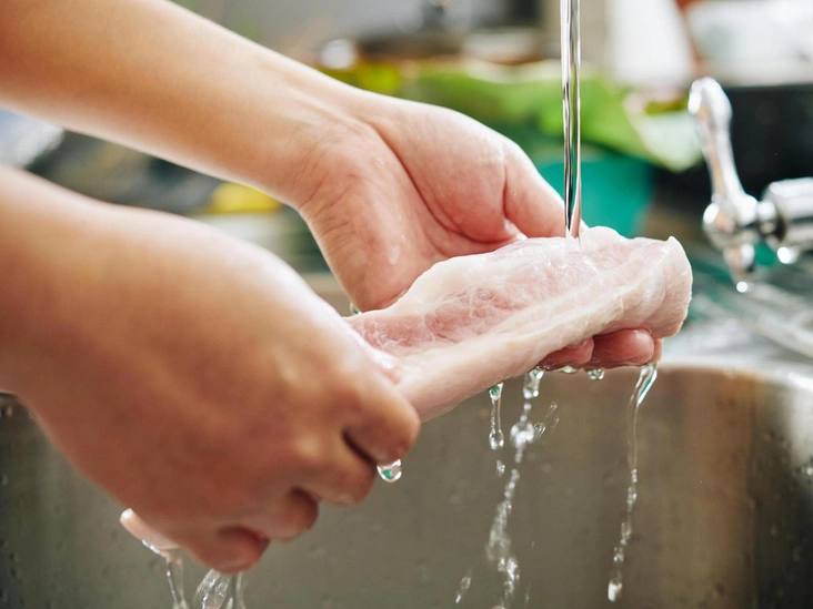 Как правило, мясо, которые вы покупаете, уже прошло достаточно этапов очистки. Если вы решили промыть мясо под проточной водой, необходимо быть готовым к тому, что немыслимое количество опасных бактерий попадет и на раковину, и на кран, и на губку для мытья посуды, которую вы в дальнейшем еще будете использовать.