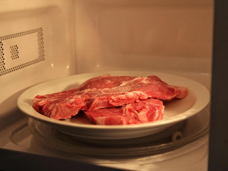 Прибегайте к этому способу только в самых крайних случаях. В микроволновых печах действительно предусмотрена опция размораживания мяса, однако в таком случае белок будет нагреваться неравномерно — и это вновь может привести к размножению вредных бактерий.