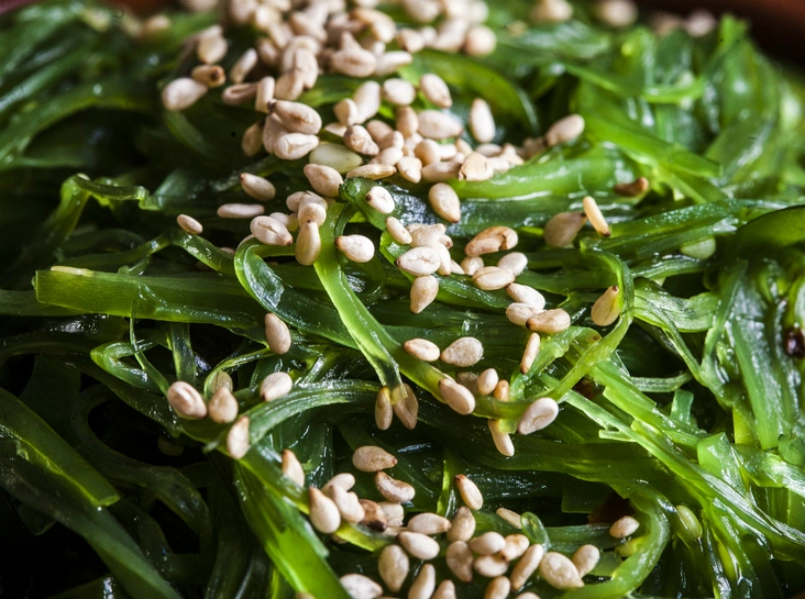 Считается, что морские водоросли по своим питательным качествам превосходят все остальные виды растений. Они содержат целый ряд витаминов и минералов, среди которых витамины А, С, D, K, PP, а также фолиевая кислота. Существуют десятки съедобных морских водорослей, среди них спирулина, ламинария, водоросли нори. Они прекрасно сочетаются с рыбой, салатами, сыром тофу, а также йогуртовыми заправками.