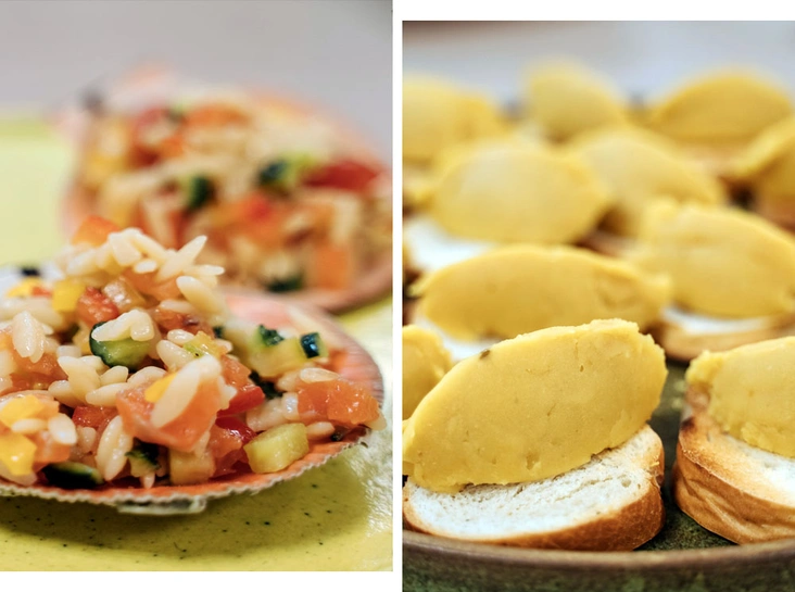Приготовить соус. Произвольно измельчить томаты и лук, обжарить до размягчения, добавить томатную пасту. Сахар, орегано и соль. Блендировать.