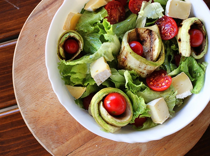 Салат с помидорами, кабачками и мягким сыром