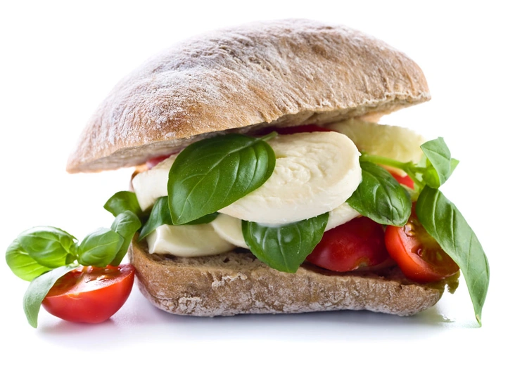 Чиабатта, запеченная с сыром, помидорами черри и жареным арахисом