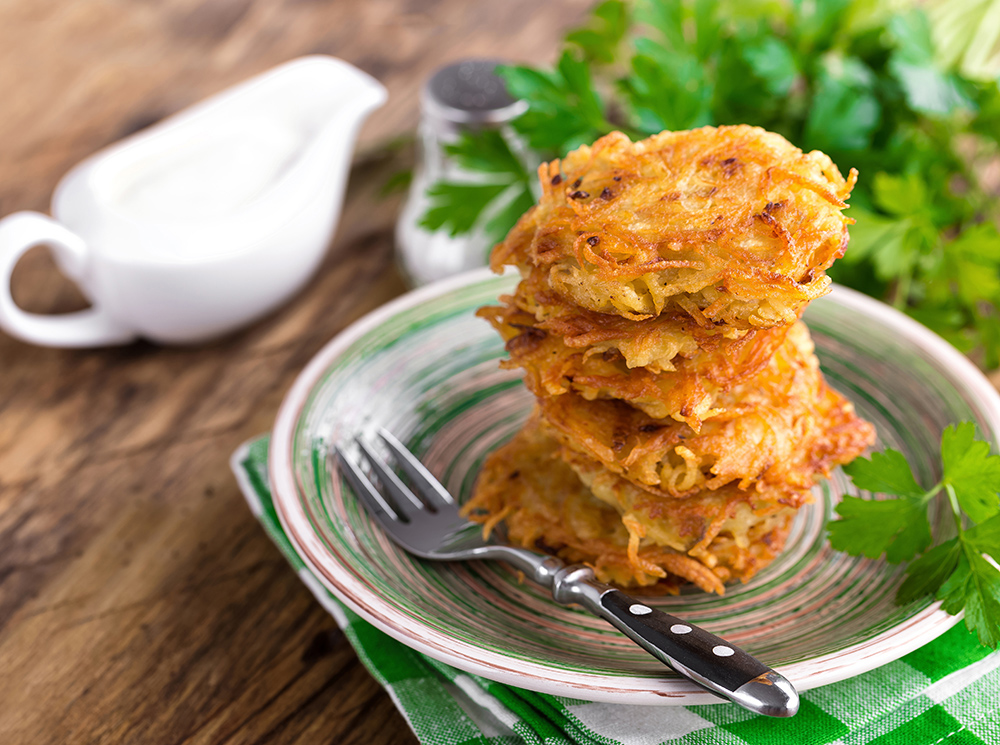 - Подавать драники следует горячими со сметаной и зеленью.