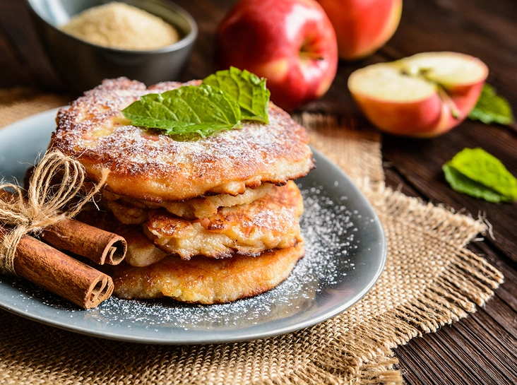 Завтрак выходного дня должен быть вкусным, необычным, но простым в исполнении. Предлагаем вам наполнить квартиру запахом печеных яблок и приготовить необычные оладьи.