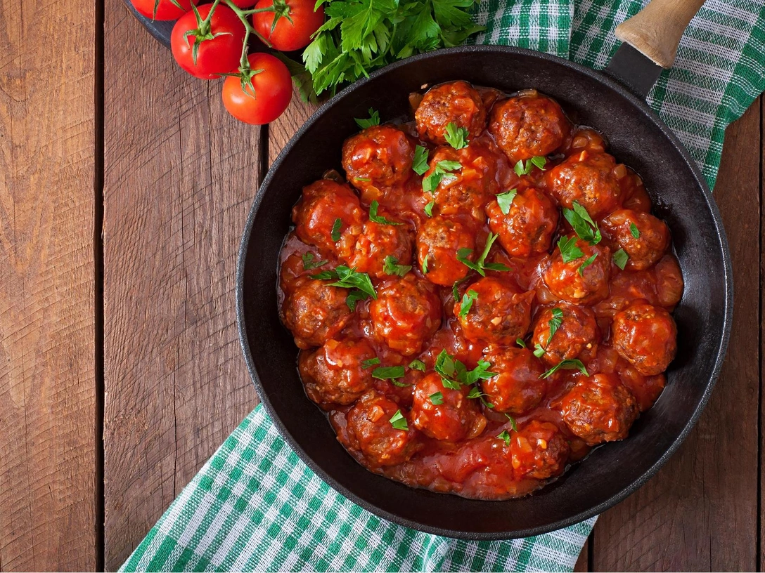 При желании можно дополнительно запечь в духовке, предварительно посыпав фрикадельки тертым пармезаном. Подавать с зеленью.