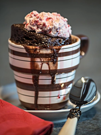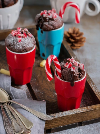 Многие покупают готовые смеси для приготовления кекса в кружке, однако если у вас их нет, состав можно повторить, используя подручные средства. Сверьтесь со списком ингредиентов — возможно, все необходимое есть у вас дома. Вы можете приготовить шоколадно-вишневый десерт ко Дню святого Валентина (он отлично впишется в цветовую гамму этого праздника) или просто домашнему кинопросмотру. Это не займет слишком много времени — вы вполне можете уложиться всего в 5 минут (включая сбор ингредиентов). Кстати, десерт подойдет и для новогодних праздников, если вы подберете соответствующий декор. Помимо цветного мороженого подойдут рождественские леденцы в полоску в сочетании с сахарной пудрой, напоминающей снег, или зефиром маршмеллоу.