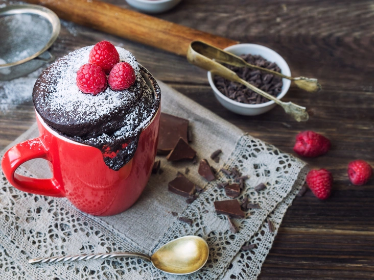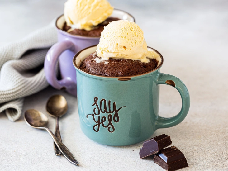 Многие покупают готовые смеси для приготовления кекса в кружке, однако если у вас их нет, состав можно повторить, используя подручные средства. Сверьтесь со списком ингредиентов — возможно, все необходимое есть у вас дома. Вы можете приготовить шоколадно-вишневый десерт ко Дню святого Валентина (он отлично впишется в цветовую гамму этого праздника) или просто домашнему кинопросмотру. Это не займет слишком много времени — вы вполне можете уложиться всего в 5 минут (включая сбор ингредиентов). Кстати, десерт подойдет и для новогодних праздников, если вы подберете соответствующий декор. Помимо цветного мороженого подойдут рождественские леденцы в полоску в сочетании с сахарной пудрой, напоминающей снег, или зефиром маршмеллоу.