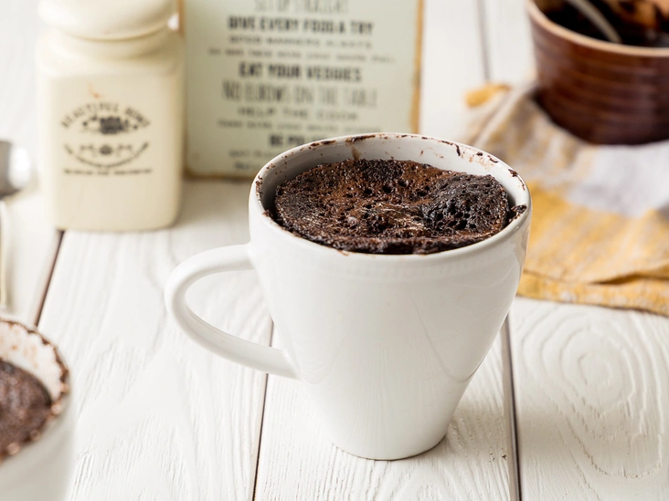 Поместите кружку в микроволновую печь и готовьте на самой высокой мощности в течение 1,5–2 минут. Кекс будет готов, когда перестанет подниматься и станет твердым.
