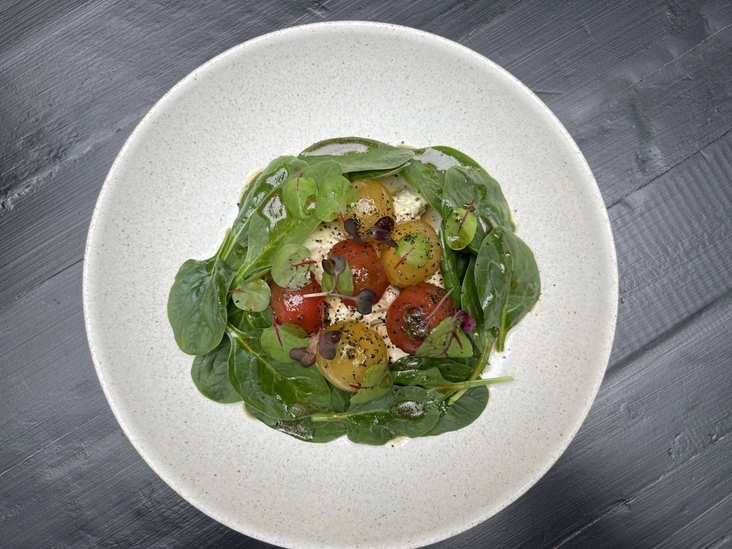 Ресторан-оранжерея от команды Blanc в «Суперметалле» выглядит как настоящий цветущий сад. Шеф-повар — Александр Караджиев (старший брат Дмитрия Караджиева, шеф-повара Blanc) готовит там вкуснейший салат с разными помидорами и молодым домашним адыгейским сыром. Попробуйте повторить дома.