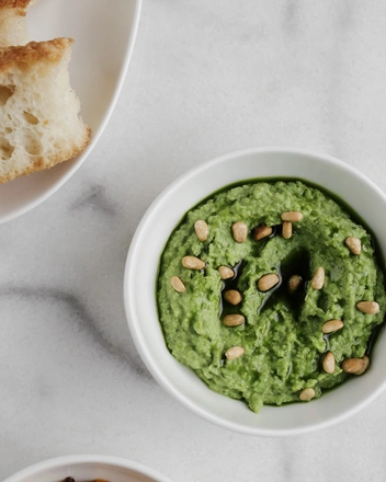 1 Настолько неприлично простого рецепта у нас еще не было — все действия умещаются в один пункт — просто пробейте все ингредиенты в блендере. И украсьте горошкомоле кедровыми орешками.