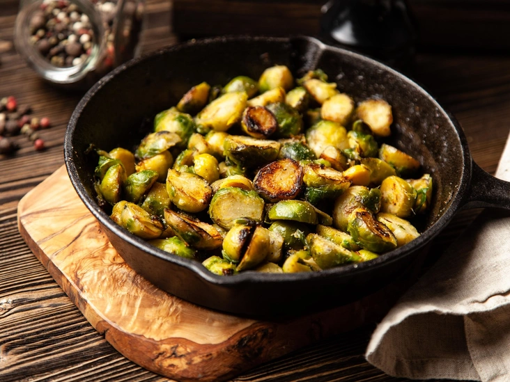 Жареная брюссельская капуста с миндалем