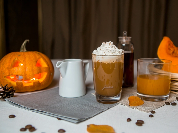 Приготовьте чашку доппио. Отдельно смешайте сливки с коричным сиропом и добавьте тыквенный сок (или пюре). Разлейте получившуюся смесь в высокие прозрачные бокалы и влейте заваренный доппио. Каждый бокал украсьте стручком корицы и, по желанию, взбитыми сливками.