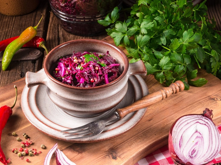 «Квашеная капуста — ферментированный продукт, наполненный полезными пробиотиками, вкусный, дешевый и очень простой в приготовлении», — подчеркивает эксперт по похудению и писатель Майкл Мосли, которого цитирует Express.co.uk. Он и сам регулярно ест маринованную красную капусту, приготовленную по его авторскому рецепту, которым Майкл охотно делится со своими читателями (а мы — с вами).