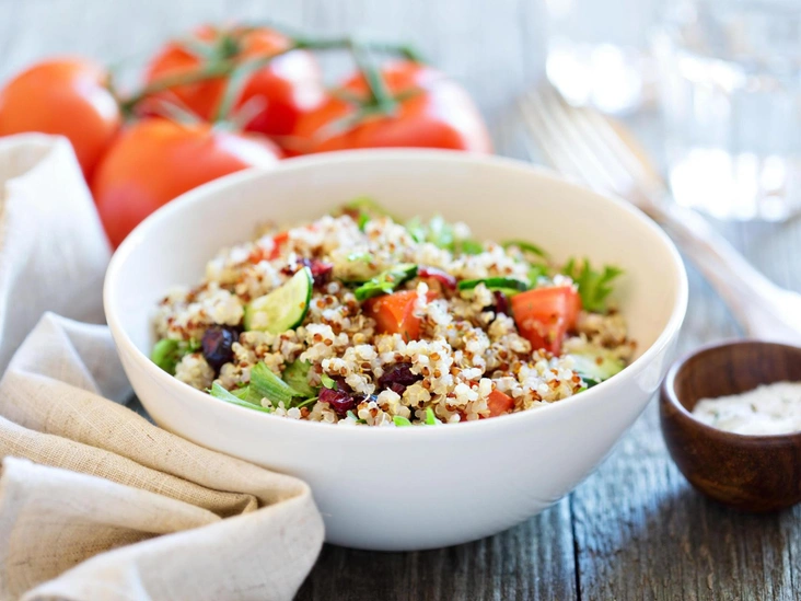 Чашка киноа — это 8 грамм белка, железо, клетчатка, витамины группы В и всего 220 калорий за 15 минут готовки. Крупа подойдет для основного блюда: смешайте киноа, нарезанную курицу, оливковое масло, соль, перец и лимонный сок. Или сделайте сладкую кашу: перемешайте киноа с миндальным молоком, медом, сухофруктами и орехами.