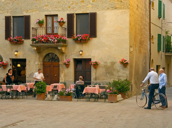 В реальности город Пьенца нельзя назвать живым: после обеда, когда поток туристов схлынет, вы обнаружите пустые дома. В которые из них сами торговцы заселяются только на время летнего заработка. Но до того, пройдемся по солнечным улицам, следуя за сырным духом – он здесь повсюду.