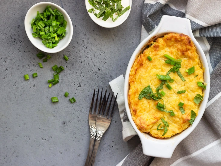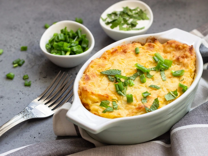 Если очень хотите приготовить полноценное блюдо, которое не потребует дополнений, вы можете добавить в запеканку слой нарезанной кубиками ветчины или немного отварных куриных грудок. Также подойдет говяжий фарш, если ваша семья приветствует блюда с красным мясом.