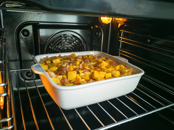 Сверху посыпьте запеканку остатками сыра и выпекайте ее в духовке при температуре около 170-190°C (в зависимости от мощности духовки и режима), пока она не запузырится и не подрумянится. На это уйдет до получаса. Не накрывайте сырный картофель во время запекания, если вы хотите, чтобы верх стал золотисто-коричневым.