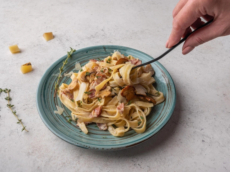 Этот сытный рецепт спагетти с обжаренными куриными грудками и хрустящим беконом порадует даже самых привередливых едоков. Блюдо в тосканском стиле порадует всех, и на его приготовление уйдет не больше трех четвертей часа. Единственный минус — калорийность блюда. Так что готовить это итальянское угощение лучше по особым случаям.