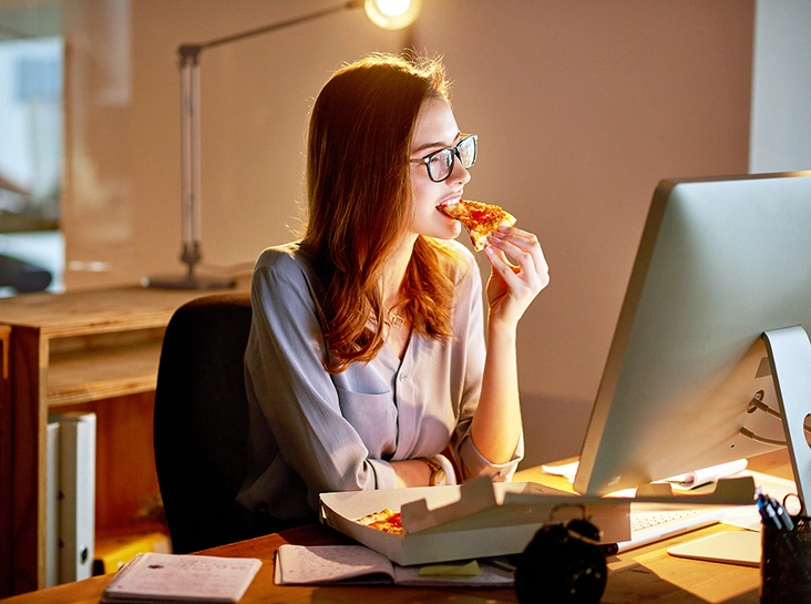 Офис – особая культурная среда каждого крупного города. Именно там большинство людей проводят большую часть своих дней, строят карьеру, заводят дружеские отношения, обсуждают последние новости. В офис мы же переносим и все свои привычки, в том числе и пищевые. Из-за сидячей работы, малоподвижного образа жизни, несбалансированного питания, как правило, возникает постоянное желание прерваться на перекус. Нередко можно увидеть картину, когда и полноценный прием пищи проходит за рабочим столом. Всё это может легко спровоцировать негативные последствия в виде лишнего веса и проблем с пищеварением – рассказываем, как этого избежать.