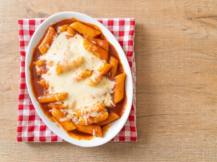 Если вы когда-нибудь прогуливались по оживленным улицам Сеула, то наверняка чувствовали запах токпокки. Это самый популярный стритфуд в Корее, который, по одной из версий, придумала женщина, которая случайно уронила рисовые палочки в острый соус. С тех пор токпокки подавали по-разному: на стол императора ставили блюдо с говядиной и соевым соусом, а на улицах любили вариацию с острым соусом и луком. Токпокки известен своим сладким вкусом, поэтому идеально сочетается с корейским острым соусом кочуджан и тянущимся сыром. Если у вас нет такого соуса — замените его любым острым соусом на основе красного перца. Итак, приступаем к рецепту!