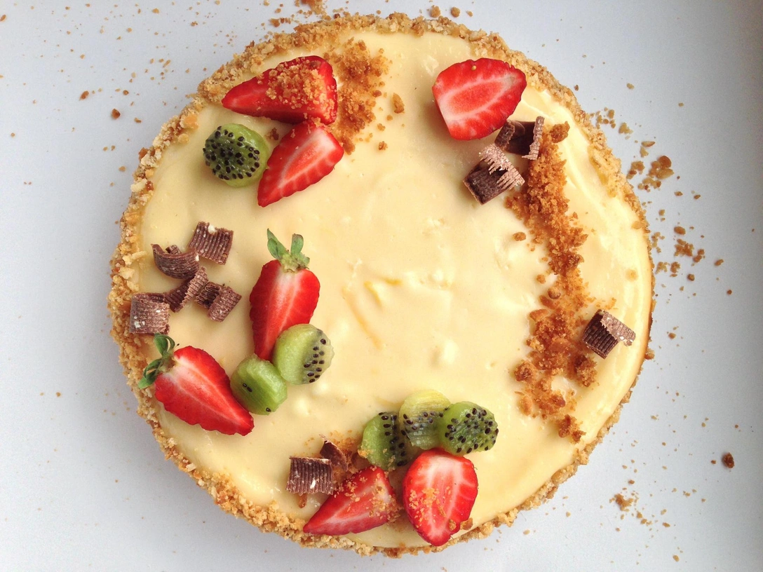 Тщательно взбитый крем аккуратно выкладываем на застывшую основу, после чего убираем торт в холодильник на несколько часов. Готово!