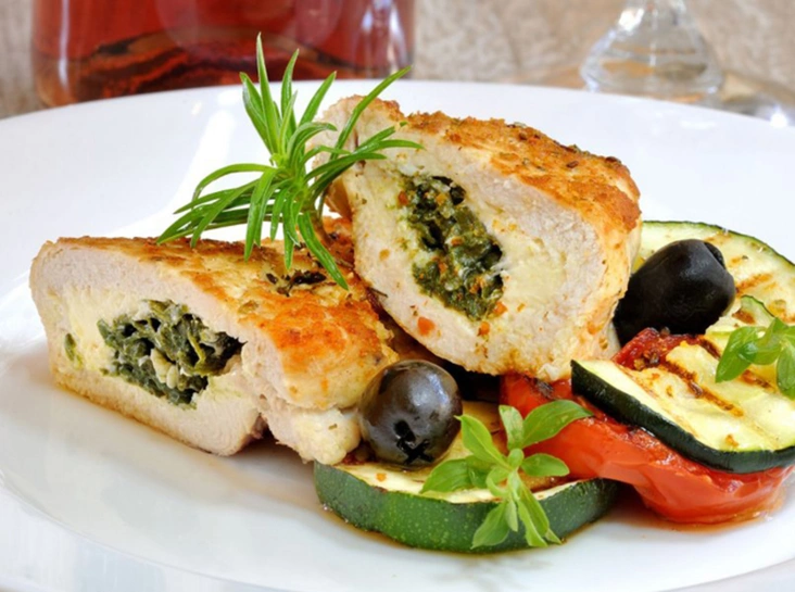 Куриное филе, фаршированное рукколой и сыром фета