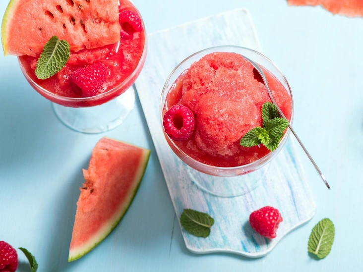 Мятная гранита с арбузом и малиной
