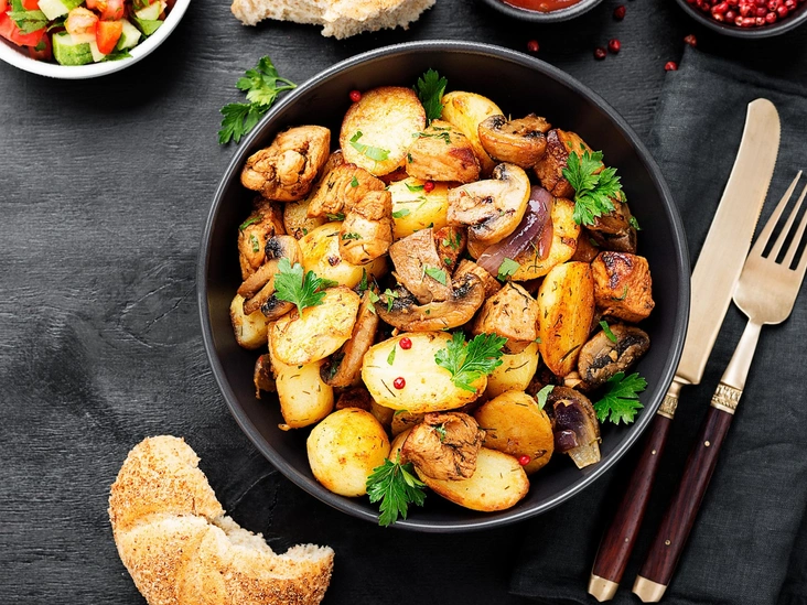 Картофельный салат с жареными грибами