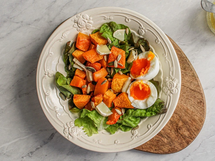 Салат с жареной тыквой и яйцом