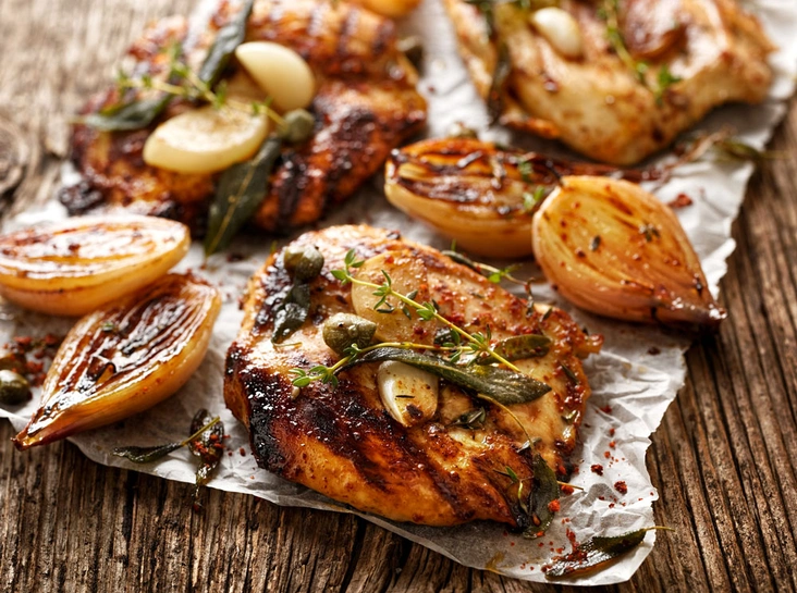 Курицу вынуть из духовки и разложить на бумажных полотенцах, давая жиру стечь. Подавать через 10 минут!