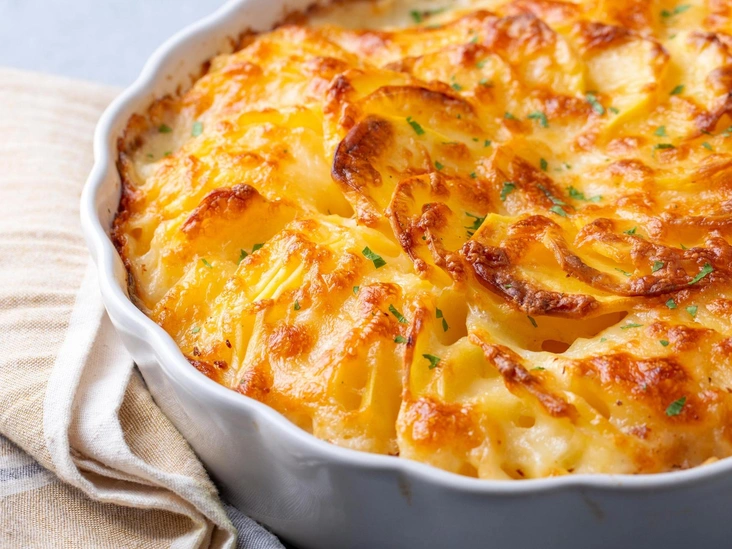 Gratin dauphinois пришел к нам из Франции, и с тех пор есть много вариантов его приготовления. Мы предлагаем самый простой и вкусный — с луком, домашним сырным соусом и печеным картофелем. Но вы можете немного изменить рецепт: