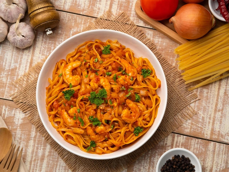 Сегодня существует много видов приготовления спагетти, а точнее, соуса, идущего к ним. Так, пасту можно приготовить на основе томатов, сливок, а также с добавлением мяса или креветок. Попробуйте и вы приготовить спагетти лингвини с креветками и пикантным соусом из красного перца, который разнообразит ваш рацион.