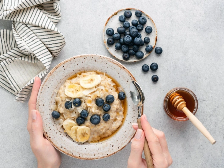 Зерновая овсянка богата бета-глюканами, растворимыми пищевыми волокнами, которые в процессе переваривания медленно отдают энергию, благодаря чему вы дольше чувствуете себя сытыми. Волокна также «связывают» вредный холестерин в кишечнике, не позволяя ему всасываться: всего одна тарелка овсяной каши на 20% снижает уровень холестерина в крови.