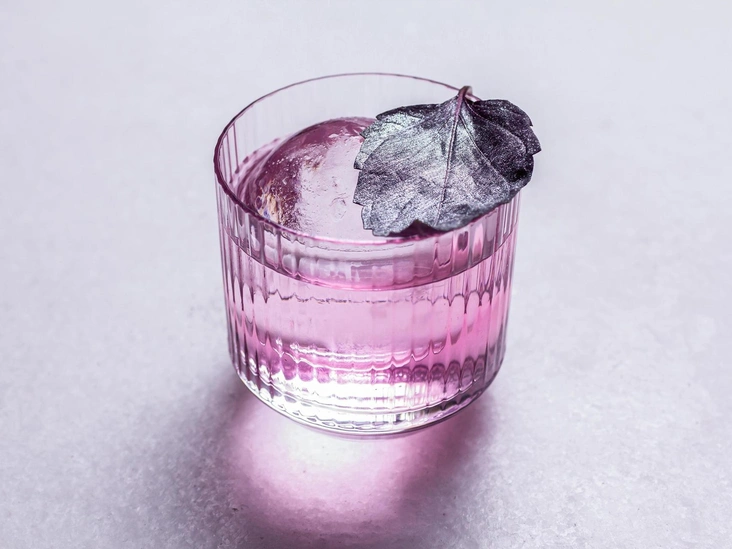 Переходим к приготовлению самого коктейля. Первым делом, смешайте джин на красном базилике, кордиал и белый винный аперитив в смесительном бокале, добавьте лд, перемешайте и вылейте в бокал «рокс» со льдом так, чтобы лед из смесительного бокала не попал в бокал рокс. Украсьте красным базиликом. Готово!